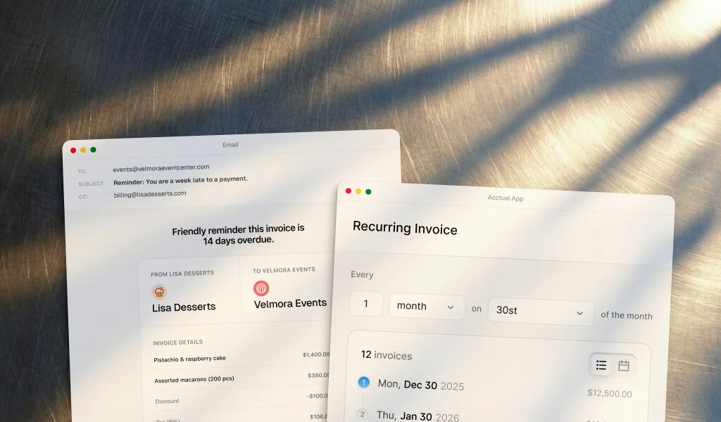 Acctual charges a small transaction fee when your clients pay: 2.7% on card payments and 1% on bank transfers. There are no monthly fees or setup costs. You pay nothing until money actually comes in.